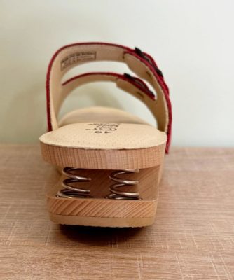 ZOCCOLO IN LEGNO MMODELLATO DOTATO DI DOPPIA MOLLA POSTERIORE “DUAL SPRINGS” AMMORTIZZANTE AL TALLONE.